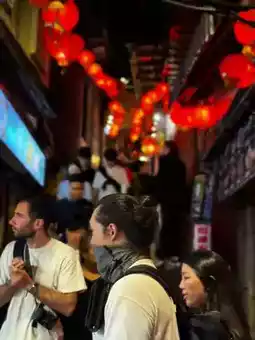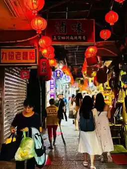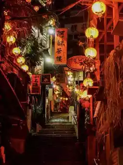 The weather was slightly cool, and the lanterns on the old street were already lit. The night of Jiufen Mountain City was foggy, and the streets were quieter and less crowded during the day, making it more peaceful.