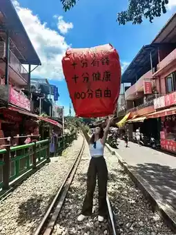 After leaving Jiufen, we drove to Shifen Station. The most distinctive activity here is to release sky lanterns on the railway.