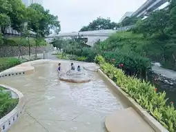 The museum boasts a vast area, surrounded by a large lawn, and features free sandpit and water play zones for children.