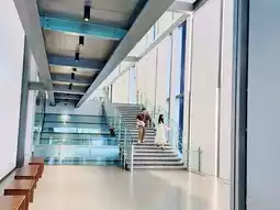 The basement level offers some free exhibition spaces, while the main entrance to the museum is located on the second floor.