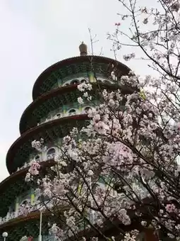 #Tianyuan Temple is located in Danshui District, New Taipei City. It is a temple with a 5-story pagoda that stands out beautifully. During the spring, this temple is very popular for viewing cherry blossoms. They are light pink cherry blossoms like those in Japan.