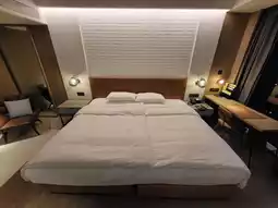 The guest rooms continue the overall style, dominated by neutral tones complemented by wooden materials and soft lighting, creating a tranquil and comfortable resting space. Some room types include a balcony with views of the Tamsui River or Guanyin Mountain. The furniture is simple yet highly functional, while the bathrooms feature a dry-wet separation design with stone textures, aligning with the brand's positioning and regional characteristics, showcasing refined details within simplicity.