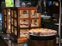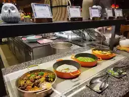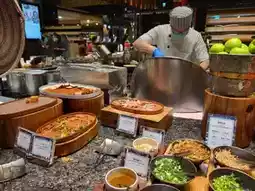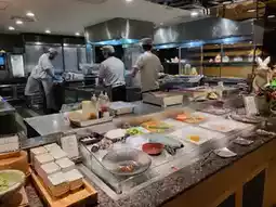 The dessert section is equally impressive, featuring colorful cakes, cream puffs, handmade puddings, freshly made crepes, and soft-serve ice cream that tempt diners to go back for seconds. Beverage options include not only the usual juices and coffee but also freshly blended smoothies and specialty drinks, providing a refreshing end to the meal.