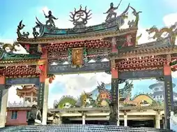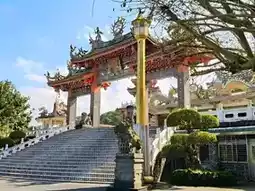Wuji Tianyuan Temple’s architecture is a striking sight, with its grand five-story pagoda crowned by a golden finial, similar to the Temple of Heaven in Beijing. Circular tiers adorned with intricate carvings and vivid colors reflect a graceful blend of traditional design and modern craftsmanship. Standing tall against Tamsui’s lush backdrop, the temple’s symmetry and elegance make it a true masterpiece in the skyline.