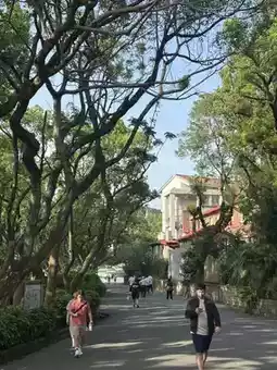 After climbing a steep uphill road, you’ll reach Tamkang University. It’s quieter than expected, with lush trees providing plenty of shade, making it look beautiful!!!