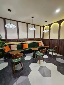 🏠 The first-floor lobby has a retro feel, perfect for photos.