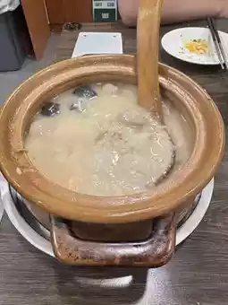 A popular restaurant with a long history, this local favorite boasts more seafood than rice for its incredibly popular clay pot porridge. 🍲 This time, we ate at the Minquan branch and ordered one of their signature dishes, the Hokkaido Raw-Grade Scallop Porridge (Hokkaido Raw-Grade Scallops + Sand Prawns + Shredded Scallops + Pork Meatballs + Nut Sauce + Celery + Ginger + Preserved Vegetables). The toppings are incredibly generous! ✨ The porridge is cooked fresh upon order, requiring a 15-minute wait. The freshly cooked porridge is incredibly fragrant and flavorful, with the soft, glutinous rice grains bursting with umami, creating a truly blissful experience. We also ordered spicy preserved eggs, salted egg bitter melon, and typhoon shelter crab, and complimentary hot tea was provided at the table. The porridge portion can be adjusted to suit the number of people, making it perfect for two.
