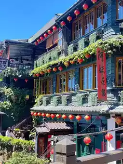 Jiufen Old Street is a small, charming market nestled in a mountainside, adorned with red lanterns, a unique charm.