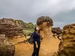 Yehliu Geopark Taiwan is a tourist attraction that exceeded our expectations. My friend planned the places to visit, and I helped plan the itinerary. We took a public bus, which was so much fun. There were lots of curves and the bus driver was super fast, lol. When we arrived, it just opened and we bought our tickets and just walked along the path. It might not have been amazing, but once we got inside, the sea breeze wasn't sticky at all. It was super cool and comfortable. It's an amazing place, maybe because I'd never been abroad before. It was a completely new experience. The walkway was quite long. We met a Korean ajumma who took pictures with us as a group. They were so cute. I loved it so much. It healed my heart like we were traveling to the beach in our country. The staff took very good care of us. They stood around the place. I was very impressed. ✨️✨️🫶 #GetDiscountsWithoutLuck #TaiwanTravel #Taiwan