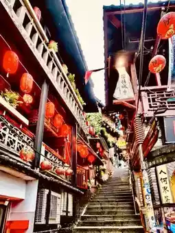 Jiufen Old Street, located in Ruifang District, New Taipei City, was once a major gold mining town in Taiwan. Today, it retains a rich nostalgic charm, attracting countless tourists. The winding stone steps are lined with teahouses, food stalls, and handmade souvenir shops, showcasing the unique charm of a mountain town. The famous A-Mei Tea House and various cafes converted from old houses are perfect spots for tea, sightseeing, and photography. At night, Jiufen's streets are lit with lanterns and shrouded in curling smoke, creating a sense of time travel back in time to the heyday of the gold mining era. Beyond the food and tea culture, you can also take a hike to the mountaintop observation deck, overlooking Keelung Mountain and the Northeast Coast coastline, and enjoying the charming blend of mountain and sea.