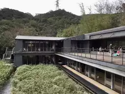 Forest garden, tatami dining area, tea ceremony reception, parking
