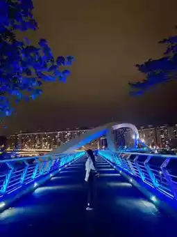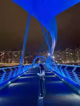 As night falls, the lights in Sunshine Park gradually illuminate. The pathways are lit with a soft yellow glow—not too harsh, but enough to make you feel safe while walking. The park is well-designed, featuring spacious walkways, lawns, play areas, and riverside trails. What captivates me the most is the scenery along the Bitan River. The evening breeze carries a slight chill, and the water reflects the distant lights, shimmering gently. Accompanied by the sounds of insects and the occasional footsteps, it creates a serene and calming atmosphere.