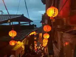 🌙 At night, red lanterns are lit up, lining the streets and stairs. 🏮✨ The lights reflect off the wooden houses and teahouses, creating a romantic, warm atmosphere, like stepping into a world straight out of a famous animation. 🎥🍿