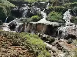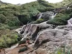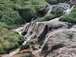 💡 This waterfall is famous for its water flowing down the rocky cliffs, washed with copper and iron ore, giving it a golden glow ✨. It's incredibly beautiful when the sun shines, as if nature had created a golden backdrop for photos 📸. Many people even wonder, like us, "Is there really gold here?" 🪙
