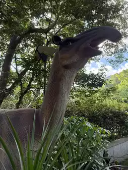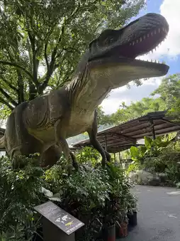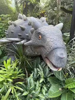 In addition to the lush tropical rainforest and refreshing phytoncides, the Big Roots Forest Park offers an unexpected sight: towering dinosaur models nestled among the trees.