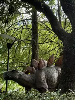 With their jaws wide open and their lifelike poses, they appear to have traveled from the Jurassic era. For children, this is a wondrous adventure playground; for adults, it's a fun interlude, adding a touch of lightheartedness and playfulness to the majestic forest trails.