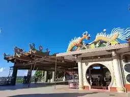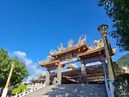 The main hall of Tianyuan Temple consists of five levels, with the central hall dedicated to Wuji Laozu. The exterior architecture blends traditional Chinese palace aesthetics with Western dome design, characterized by tiered eaves that rise layer by layer. The vivid color contrasts make it particularly magnificent against the backdrop of blue skies and pink cherry blossoms. Many visitors enjoy ascending the staircase from below, taking in panoramic views of the Tamsui mountain range and river scenery. Especially at dusk, the golden sunset casts a glow on the white walls and glazed tiles, creating a breathtakingly beautiful sight.