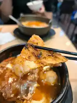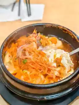 This Korean restaurant has been around for a long time. The prices are affordable and the portions are generous. The army stew is also delicious. However, the food can be a bit slow to come out. The owner makes the drinks himself, so the wait can be endless. The owner is constantly showing you your seat and taking the bill. After the bill is taken, he'll make the drinks and show you again. By the time you get your drink, you're usually almost done. So if you want one, you might want to ask the owner to bring it first, otherwise you'll have to wait forever. You can't make reservations, so you have to line up on site. Last time I went, I waited about half an hour.