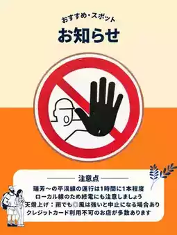 Be mindful of your stay time, and be aware of the last trains, as this is a local line.