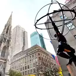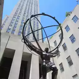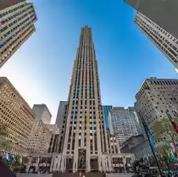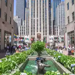 Rockefeller Center is a complex of 19 commercial buildings covering 22 acres (8.9 ha) between 48th Street and 51st Street in the Midtown Manhattan neighborhood of New York City. The 14 original Art Deco buildings, commissioned by the Rockefeller family, span the area between Fifth Avenue and Sixth Avenue, split by a large sunken square and a private street called Rockefeller Plaza. Later additions include 75 Rockefeller Plaza across 51st Street at the north end of Rockefeller Plaza, and four International Style buildings on the west side of Sixth Avenue.