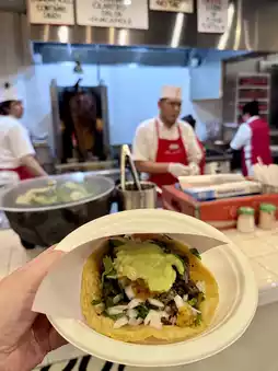 It’s a very popular store and even though it moves very quickly you still have to wait in line for 15-20 minutes. A taco costs between $4.25 and $5.25, which is a great price in expensive NY. The pork taco is highly recommended, as it is crispy and tasty. There is a hidden version with cactus flavor, but the reviews online are very polarized! There are two kinds of crusts for you to choose from, and each one comes with tamarindo, a drink made from sour beans. It's sweet and sour but acceptable!