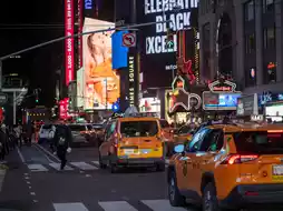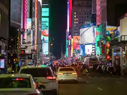 Times Square is one of the busiest spots in New York. It is filled with billboard advertisements, neon lights, and is always crowded with people.