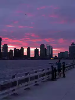 At dusk, the setting sun reflects on the Hudson River, and the skyline outlines the city's steel skeleton. As night falls, neon lights and traffic intertwine to create a poem of prosperity and freedom.