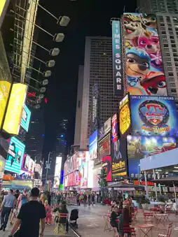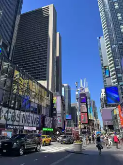 Times Square is a must-see spot when visiting New York. Lined with giant billboards, neon lights, and advertising screens, it's an overwhelming sight both day and night. At night, it's even more dazzling, making it feel like you're in a movie. ✨ It's a city that never sleeps, with lights shining all night long and packed with people!