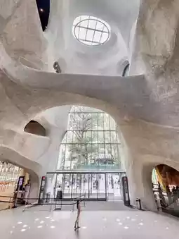 Designed by Studio Gang, the streamlined canyon atrium features five-story curved concrete walls resembling glacial erosion. Inside, you'll find the immersive "Invisible Worlds" exhibition hall and a tropical butterfly rainforest greenhouse, creating a futuristic world akin to an ant colony.
