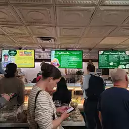 Typically, one bagel is enough to fill you up. The place is always crowded during meal times, so it's recommended to order ahead using your phone.