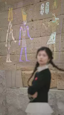 These are two murals inside the Egyptian Gallery: one is a light and shadow mural next to the temple, and the other is a physical mural in the corridor.