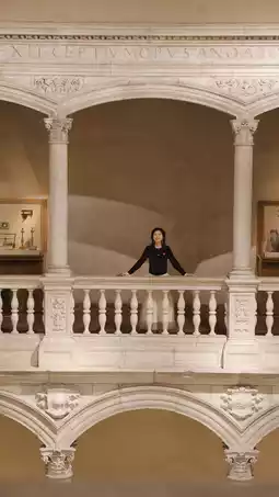 I suggest photographers go upstairs while the model stays on the first floor; this makes the photos look more grand.