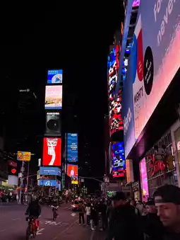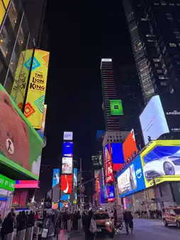 Located on the northern side of Times Square, Duffy Square is one of New York's iconic tourist attractions. Situated at the intersection of Broadway and Seventh Avenue, it is famous for its red steps (TKTS Steps). This spot is a classic location for taking photos, and at night, the neon lights and advertisement screens illuminate the area, offering a true experience of the 'city that never sleeps.'