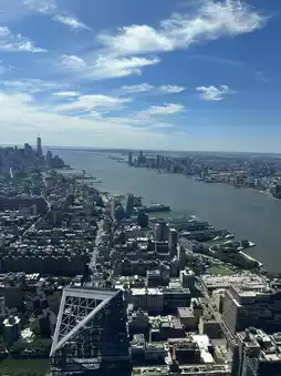 This is one of the highest outdoor observation platforms in the United States, featuring a transparent glass floor and an open view that will make your heart race the moment you step onto it ❤️🔥. We visited around noon, and although the sun was blazing ☀️, it felt pleasantly warm. The sky was a brilliant blue, and the city was crystal clear, with the entire Manhattan stretching out beneath our feet like a stunning poster. 🌆