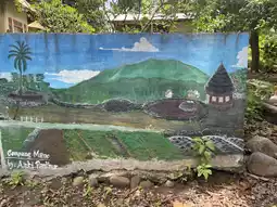 During my travels through Flores, I stumbled upon a striking wall mural that beautifully captures the essence of this incredible island. The vibrant colors and intricate details immediately grabbed my attention. It’s like the entire spirit of Flores was brought to life on one wall. The mural showcases iconic elements of the island’s identity—the Komodo dragon, native birds, and local houses, all tied together with a nod to the island’s famous coffee.