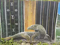 What truly stands out is how the artist managed to weave together the natural and cultural landmarks in such a harmonious way. The Komodo dragon, as majestic as it is feared, takes center stage, surrounded by birds that reflect the region’s rich wildlife. Nearby, the traditional houses represent the warmth and resilience of the local people. And of course, the coffee elements bring you back to the island’s rich agricultural traditions. ☕🐾