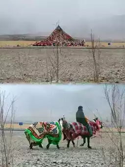 Pilgrims circumambulating the mountain spin their prayer wheels, while wind horse flags stir up waves like shattered ice. Scoop up a handful of lake water, and the snowy peak of Mount Kailash seems to melt in your palm—truly deserving of its title as "The Pearl of Tibet."