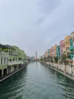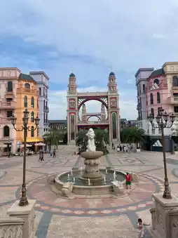 The waterway is lined with Italian buildings and shops. You can take a gondola and enjoy the European romantic scenery with music performances.