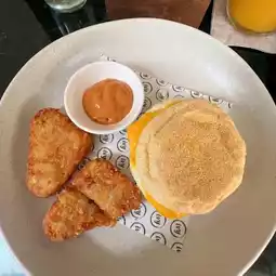Too pretty! The bun is also moist, soft, and the chicken inside is tasty. The coffee is also sooo good.