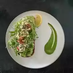 The service and vibe were unreal, creating an atmosphere that was both relaxing and invigorating. The cafe features a pool in the back, with an abundance of plants around the cafe, which makes for a refreshing and serene environment.