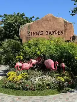 A pretty photo zone where you can take pictures of pink flamingos and the Ferris wheel!!