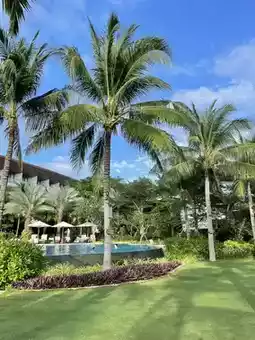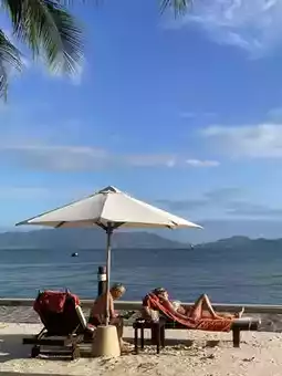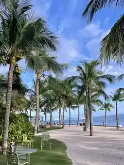 It's easy to access, 15 minutes from the city, and the accommodation is located right in front of the sea, so the view of the sea and palm trees is really nice.