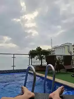 The pool is small, but you can see the sea view, and the location is close to the beach.