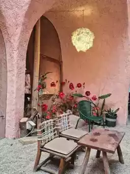 The exterior exudes an exotic atmosphere, and the interior is composed of comfortable outdoor gravel tables and indoor seats without air conditioning, so you can have fun choosing. In particular, if you sit at the gravel table, you can really feel "real travel."