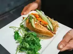 The pho was freshly prepared on the spot, ensuring its freshness, and the broth was clean and flavorful, making it very satisfying. The banh mi sandwich was also delightful, with crispy bread and fresh ingredients inside.
