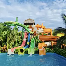• Thrilling Adventures: Experience the adrenaline rush on various large water slides, speeding down from heights and splashing into the water.