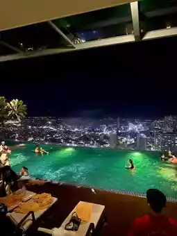 One is the Regalia Gold Hotel, conveniently located in the city center. It's close to great restaurants, night markets, and other attractions, making its location ideal! The rooftop swimming pool is truly stunning!