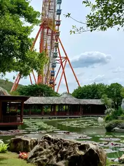 The botanical garden located within Bin Wonders is designed with themes of gardens from various countries. You can experience an exotic atmosphere as the elegant landscaping of Japanese gardens harmonizes with the ornate structures of Chinese gardens. The garden is filled with everything from tropical plants to rare flowers, making it a heavenly spot for plant lovers. Walking with children and guessing the names of plants adds an extra layer of fun. The spacious glass greenhouse is air-conditioned, ensuring a comfortable visit even on hot days. There are also photo zones scattered throughout, perfect for capturing memories. It's a quiet and peaceful place for a stroll, making it highly recommended for travelers in need of relaxation. After exploring the botanical garden, don't miss the chance to ride the cable car and enjoy the panoramic view of the entire area! 🌿🌺