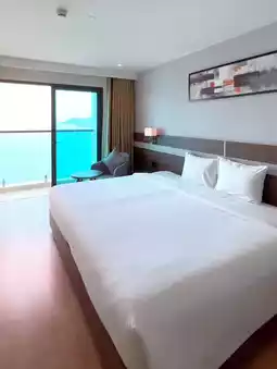 One of the most impressive features is the open-air communal area that embraces the sea breeze. The outdoor swimming pool, surrounded by palm trees and sun loungers, provides the perfect spot for guests to unwind in the afternoon. The poolside bar and the hotel's restaurant serve exquisite Vietnamese fusion cuisine, beautifully presented and delicious.