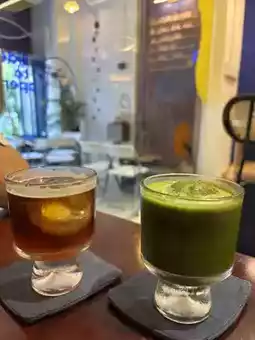 A sunny morning! After exploring the city, we headed to Helixa Coffee. The unusual combination of matcha and yuzu coffee is refreshing and delicious ☕️
